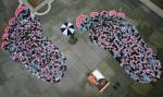 Giant feet Thousands of shoes form giant feet to launch the World Vision's Child Sponsorship campaign in London's Trafalgar Square on April 24. Each shoe represents a child in desperate need of sponsorship in the developing world.