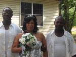 *Okay, is that her daddy on the left and her grandfather on the right? I mean, people are having kids early these days but come on! I am going to need clamps to close the shirt up... And where in the world d id these shirts come from any way and what made them think they screamed 'Wedding Attire?